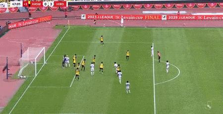 第45+2分鐘,熱爾曼-良補射破門再下一城,廣島三箭3-0柏太陽神