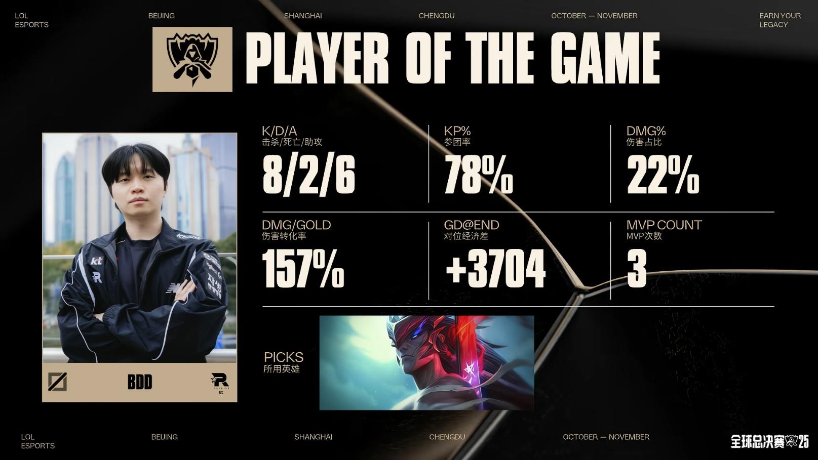 本局MVP給到對位Chovy表現非常出色的Bdd的永恩。
