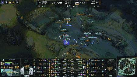 第28分鐘,GEN找到完美的開團機會,KT團戰陣型完全被分割,被打出1換4後GEN收下大龍!
