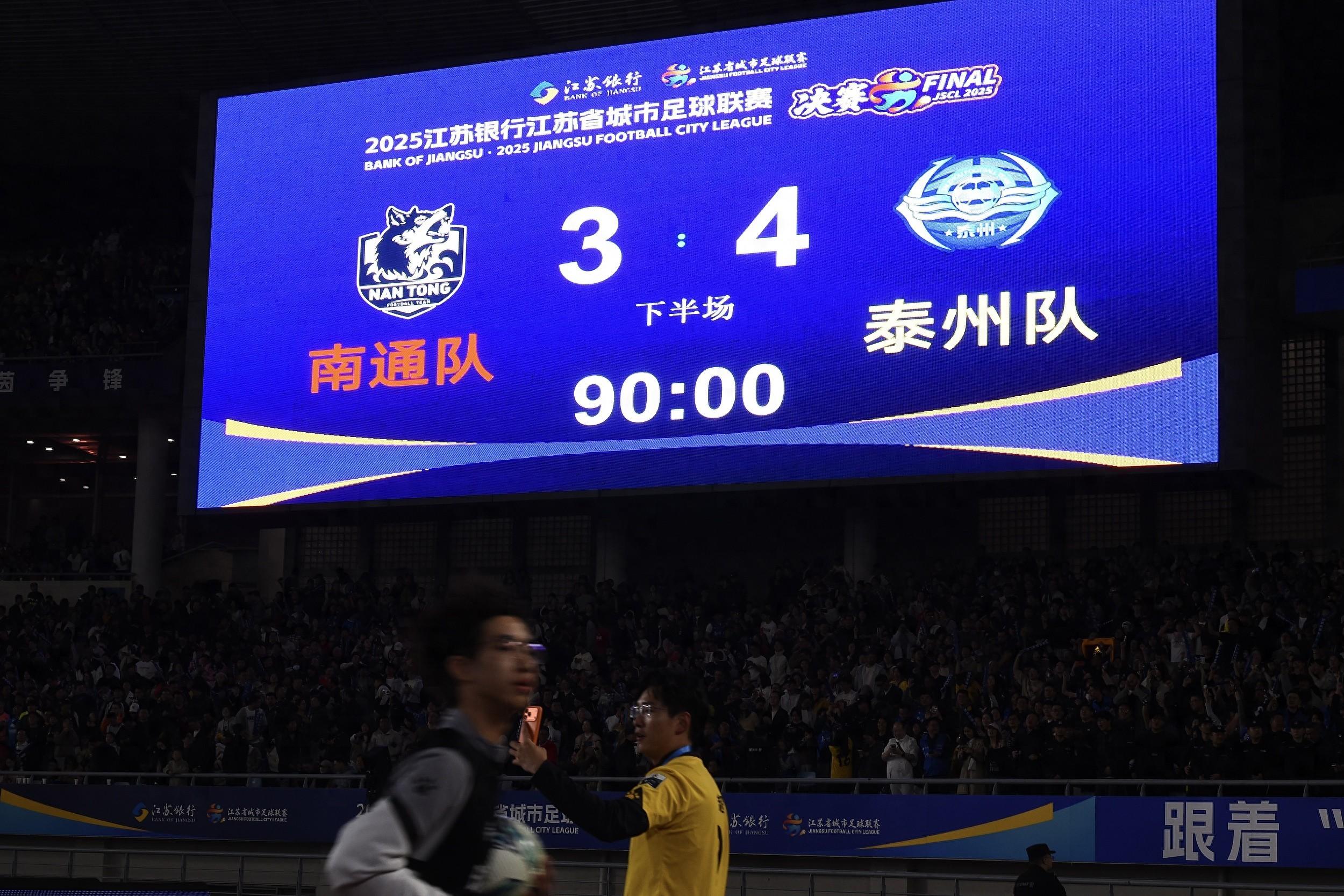 “蘇超”決賽面對常規賽第一的南通隊,常規時間雙方0-0戰平,點球大戰泰州隊4-3戰勝南通隊奪冠。