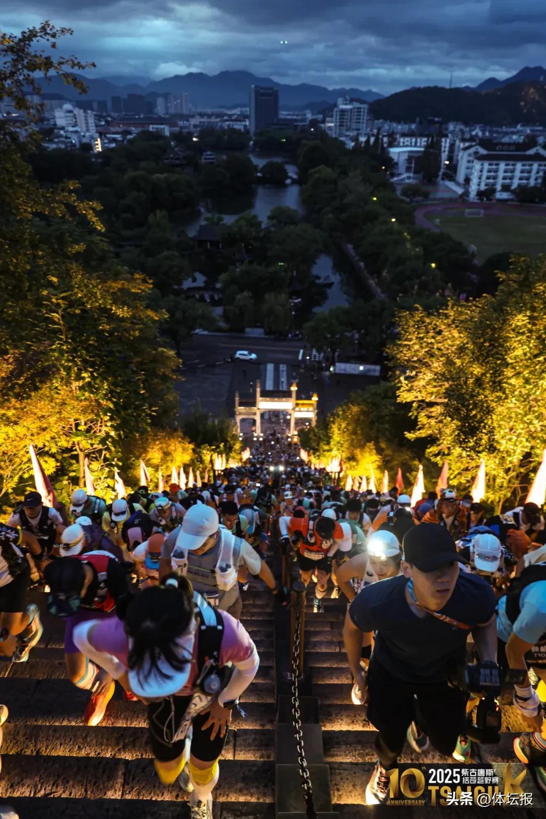 “3,2,1······”10月31日,5點40分,隨着官方計時器開始向前跳動,2025柴古唐斯括蒼越野賽在臨海古城興善門廣場鳴響了第一槍。來自國內外2400餘名越野好手依次衝出起點,在破曉前朝着嚮往已久的括蒼山挺進。