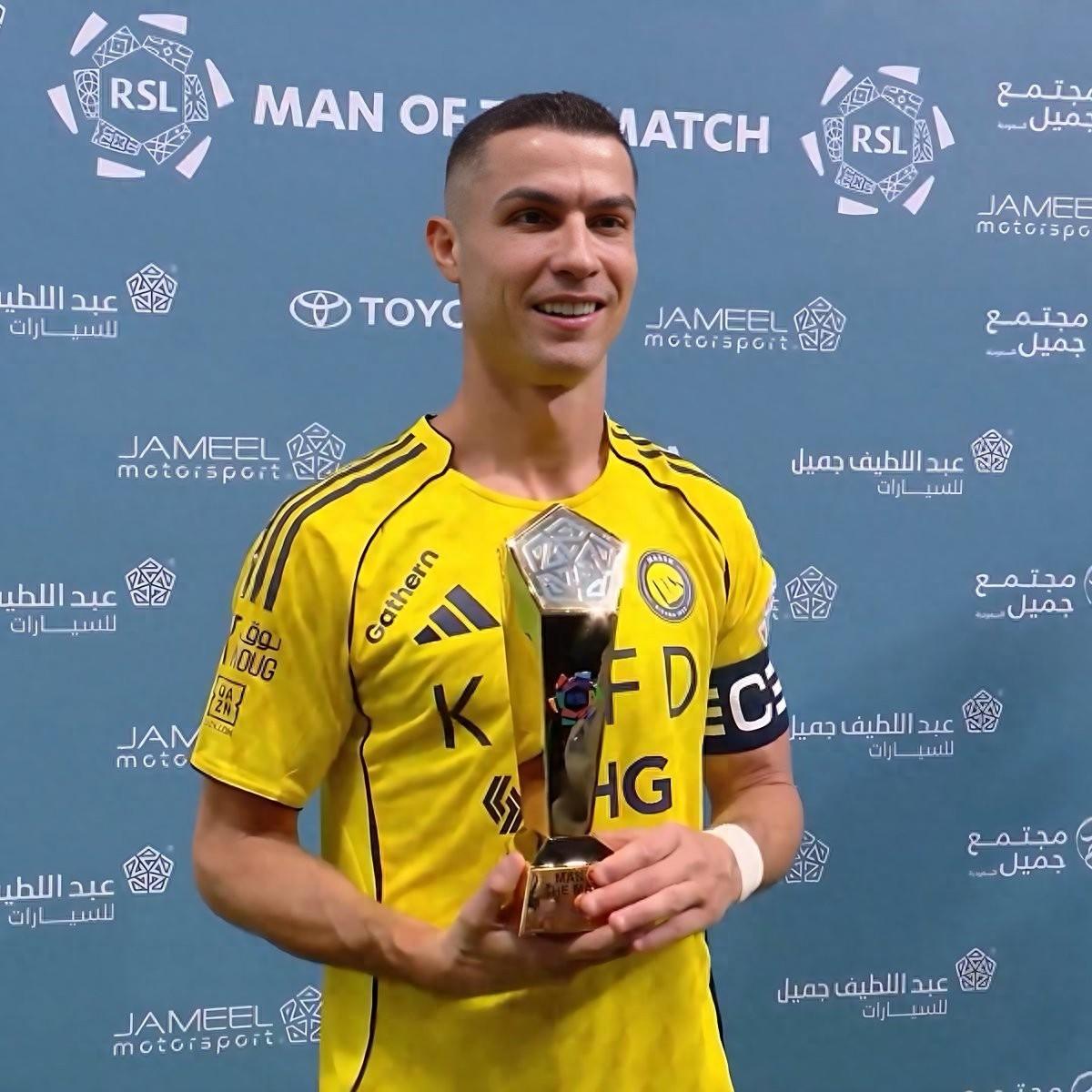 沙特聯賽第7輪,利雅得勝利主場2-1擊敗費哈,此役上演梅開二度的C羅當選全場最佳球員。