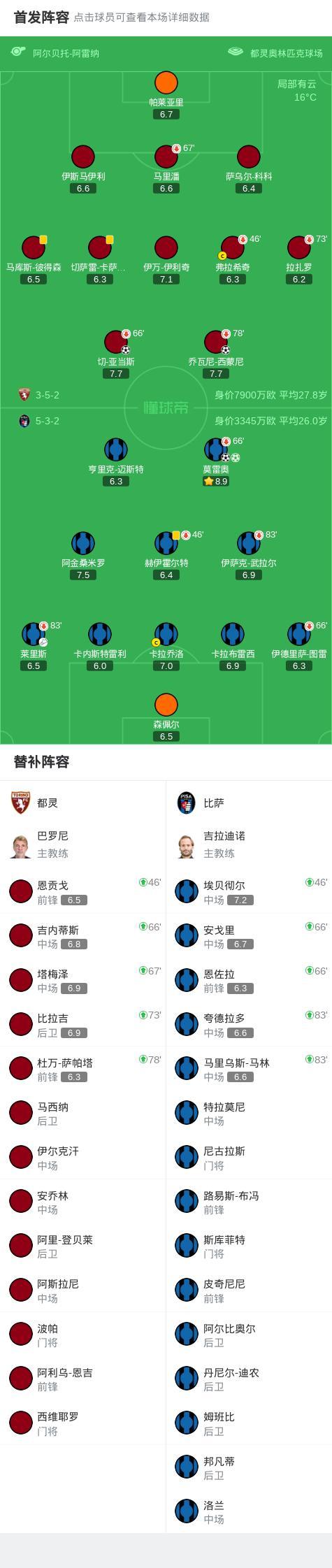 都靈2-2比薩,莫雷奧先拔頭籌,切-亞當斯救主