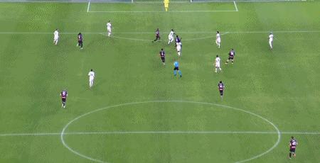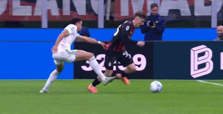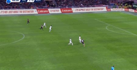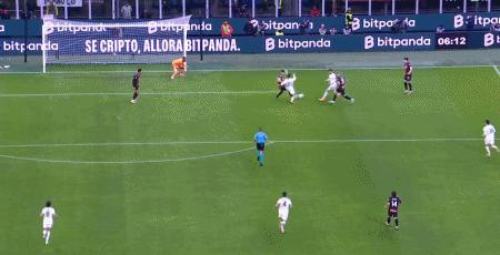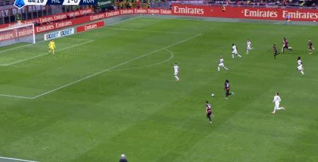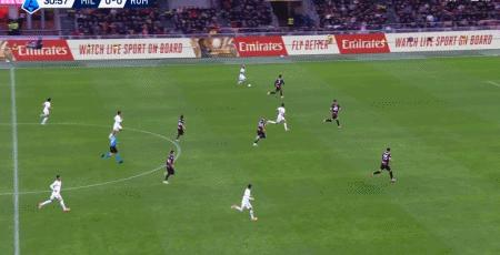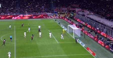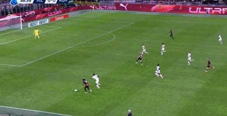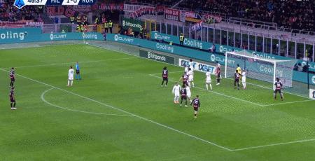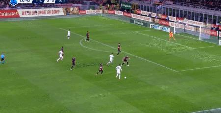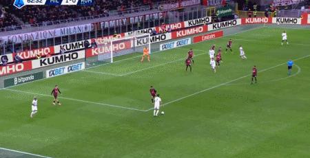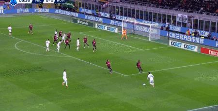 第39分鐘,萊奧倒三角傳球,帕夫洛維奇一蹴而就,米蘭1-0羅馬