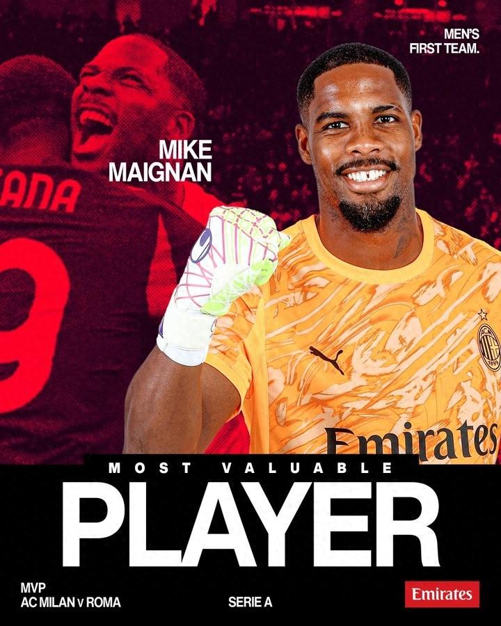在今天凌晨進行的意甲第10輪比賽中,米蘭主場1-0擊敗羅馬,賽後,邁尼昂被米蘭官方評爲本場比賽最佳球員。