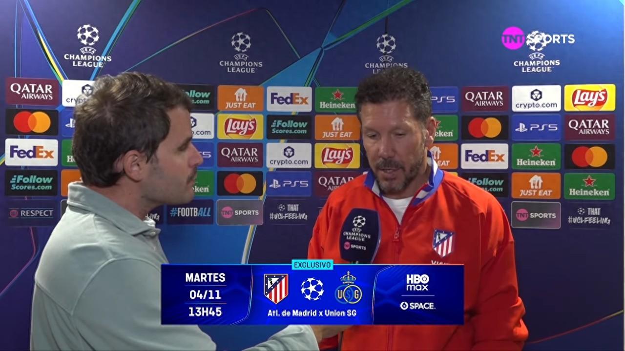 本賽季歐冠聯賽階段第4輪,馬競將主場對陣聖吉羅斯聯合。在賽前發佈會結束後,西蒙尼接受了TNT體育的採訪。
