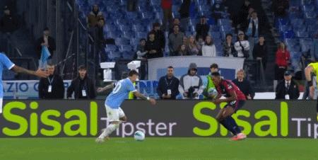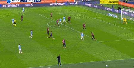 第90+1分鐘,扎卡尼禁區內一對一晃開角度勁射破門,拉齊奧2-0卡利亞里