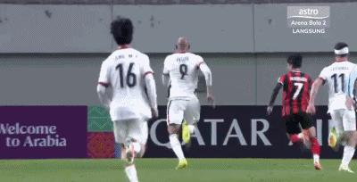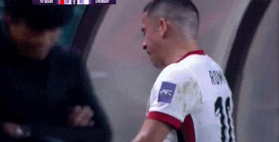第85分鐘,德爾加多放倒金珍洙,喫到黃牌