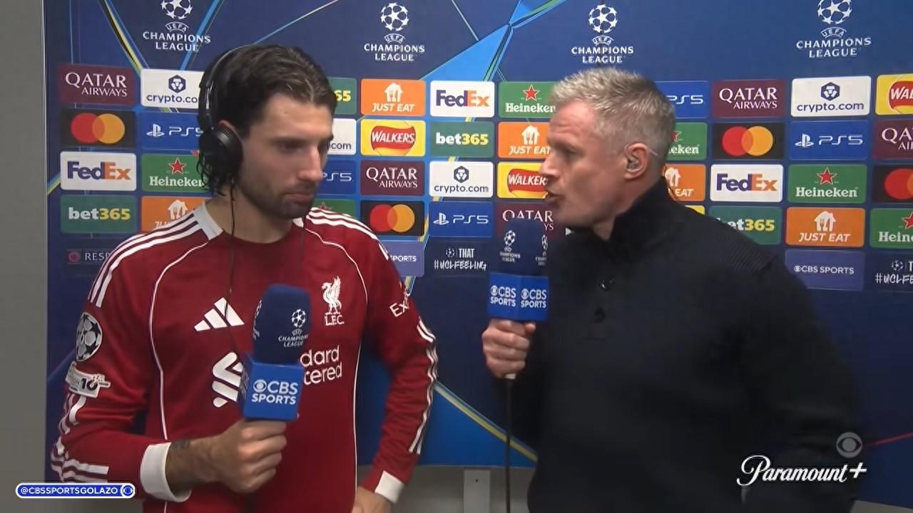 本賽季歐冠聯賽階段第4輪,利物浦主場1-0戰勝皇馬。索博斯洛伊接受了CBS體育的賽後採訪。