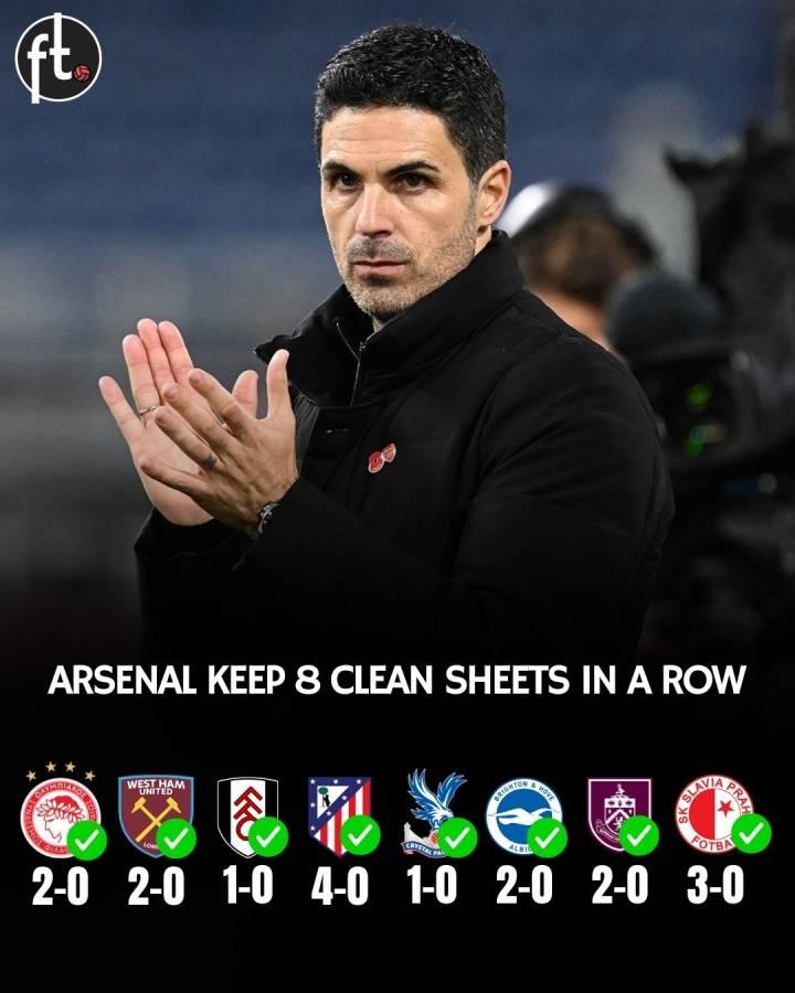 據統計,阿森納目前已經在各項賽事取得十連勝,連續八場比賽實現零封,追平了俱樂部在1903年創造的最長零封場次紀錄(8場)。本賽季至今,阿森納僅丟了三球,均是在英超賽場。