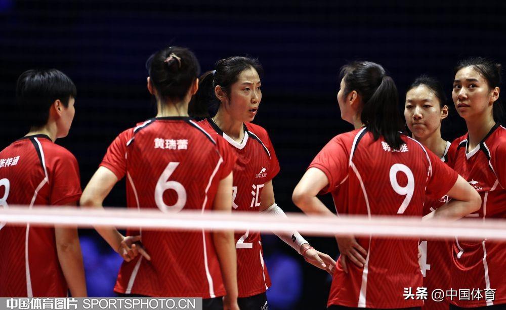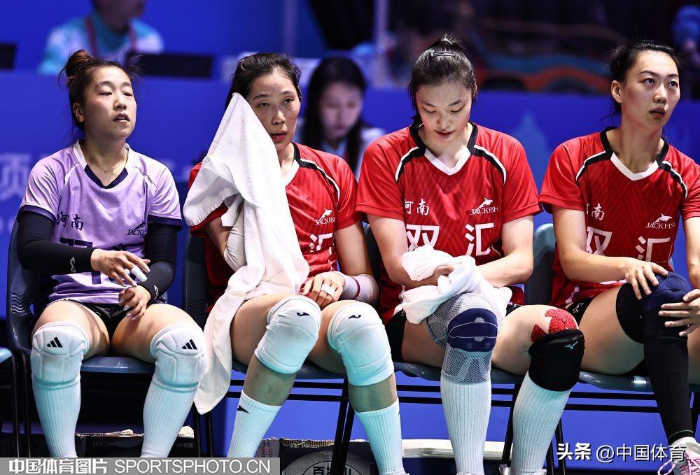 河南隊朱婷(左二)擦拭汗水