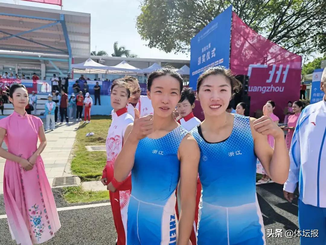 碧波之上,四槳齊飛。11月10日,十五運會賽艇比賽女子輕量級雙人雙槳決賽中,兩位浙江姑娘鄒佳琪和富靈如精密齧合的齒輪,驅動賽艇破浪前行,以5:01.70的成績,爲浙江體育代表團斬獲十五運會開幕式以來的首金。