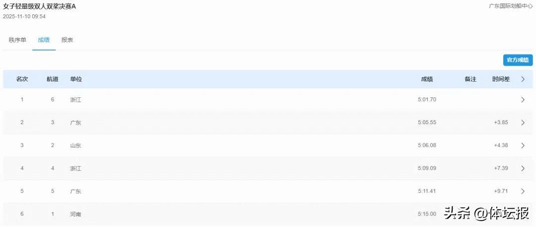 另一對浙江組合黃沈莉/張文霞以5:09.09位列第四。