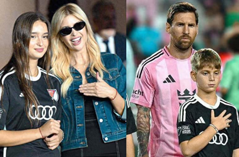 近日,川普的女兒伊萬卡更新多條快拍,曬了一家人來現場,觀戰邁阿密國際的比賽,值得一提的是,伊萬卡的孩子,也就是美國總統特朗普的孫子,就穿着梅西的球衣,站在阿根廷球王的身前,當起了球童!