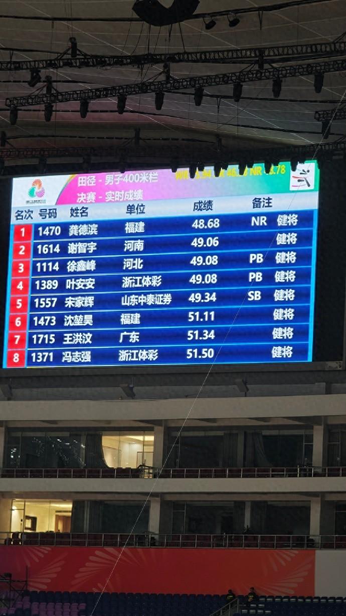 田徑男子400米欄:龔德濱48秒68打破全國紀錄奪冠,謝智宇第二