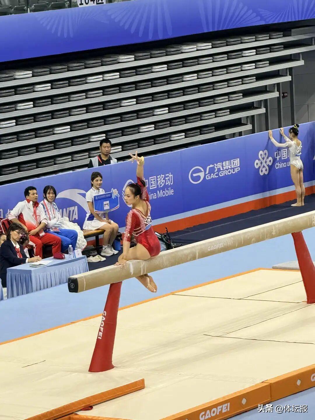 浙江女團採取了“以老帶新”的陣容,由世錦賽冠軍張清穎、全運會“四朝元老”羅歡、亞運會冠軍張欣怡領銜,攜金孝軒、趙海煜、陳芯韻等“小花”,以0.002分的優勢,力壓實力強勁的廣東隊,奪得浙江體操史上首枚全運會女團金牌。