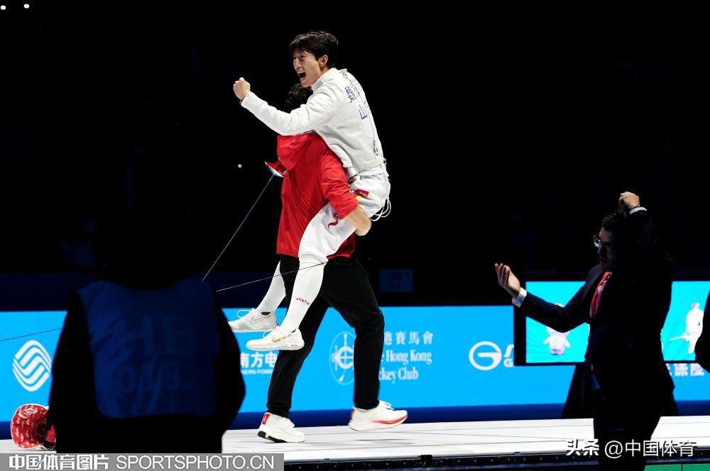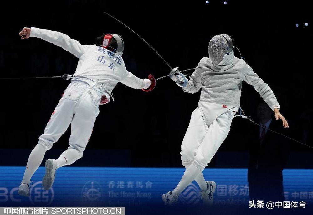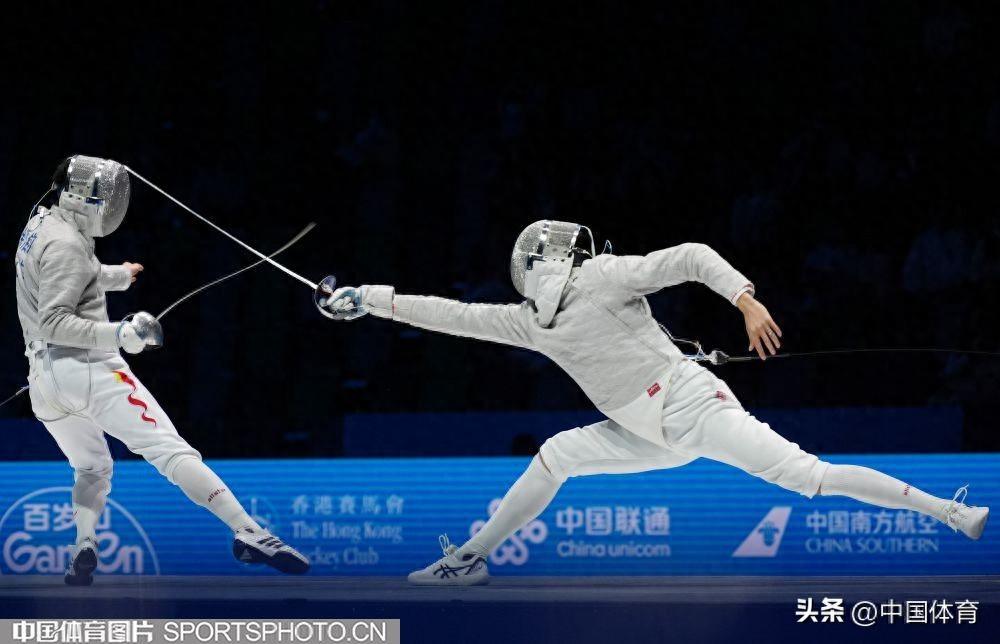 中國體育訊 11月18日,第十五屆全運會擊劍項目比賽繼續在香港啓德體育園啓德體藝館舉行。在男子佩劍團體決賽中,山東隊戰勝廣東隊獲得冠軍。(中國體育圖片 倪敏哲 攝)