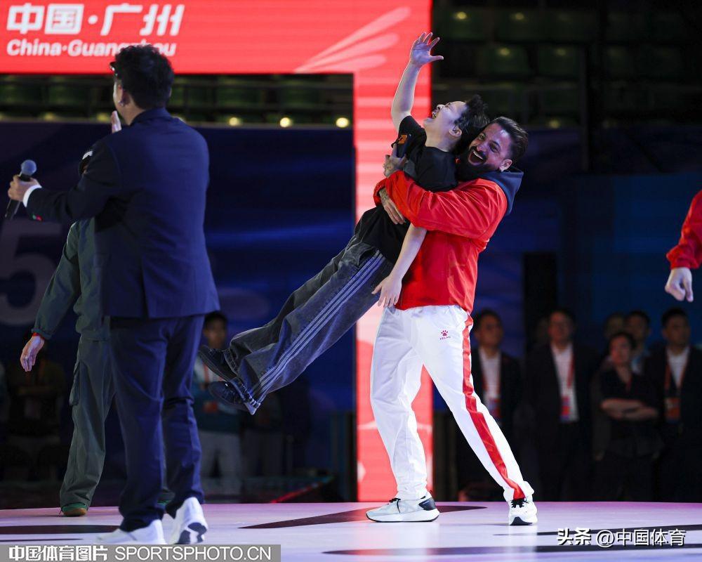 中國體育訊 11月18日,第十五屆全運會霹靂舞女子組金牌賽在廣州體育學院亞運籃球館舉行。河南隊劉清漪2比1戰勝山東隊郭樸獲得金牌,郭樸獲得銀牌。三四名爭奪戰中,浙江隊曾瑩瑩3比0戰勝江蘇隊丁靜慧獲得銅牌。(中國體育圖片 張昕 攝)