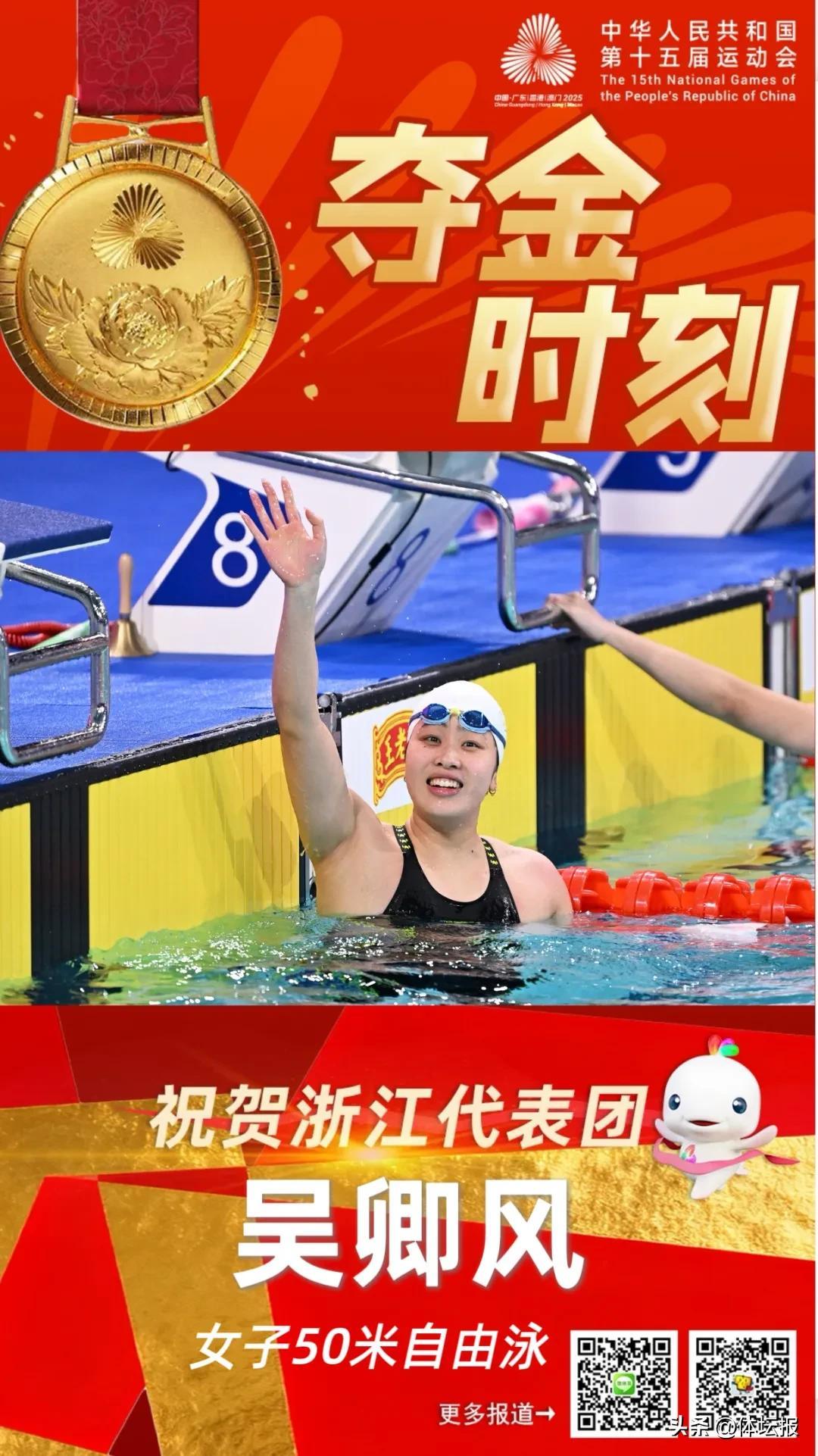 游泳賽場,老將徐嘉餘、汪順在各自個人項目中強勢奪冠,實現四連冠;吳卿風憑藉極致爆發力與完美衝刺,以24秒21的驚人成績強勢奪金;女子4×100米混合泳接力決賽中,奧運冠軍葉詩文領銜,14歲小將魯星辰開棒,爲浙江游泳收穫這枚接力金牌(魯星辰、葉詩文、餘依婷、吳卿風),不僅展現了浙江游泳的雄厚實力,更彰顯了人才儲備的厚度。
