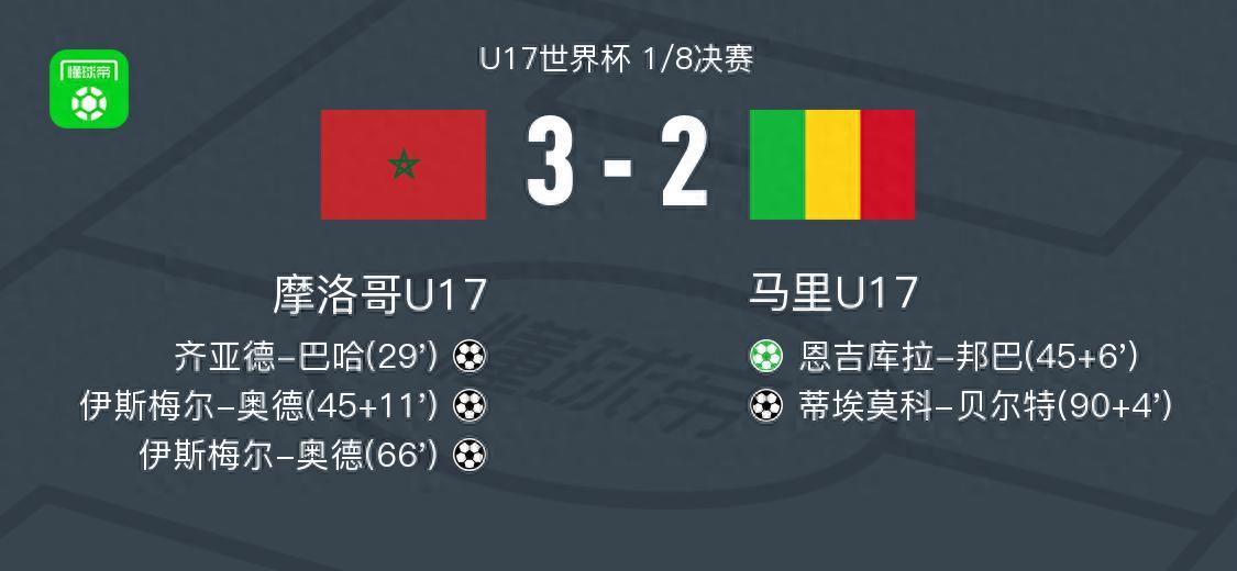 摩洛哥U17 3-2馬裏U17,伊斯梅爾-奧德雙響,齊亞德-巴哈破門