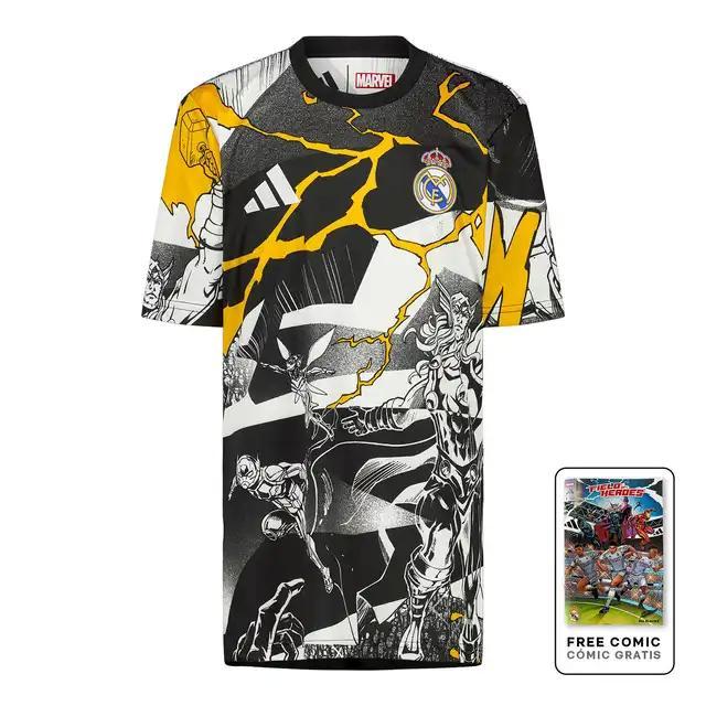 皇馬官網介紹道,與漫威聯名服飾融合了皇家馬德里的經典風格與復仇者聯盟的強大力量,帶來無與倫比的性能與時尚感。