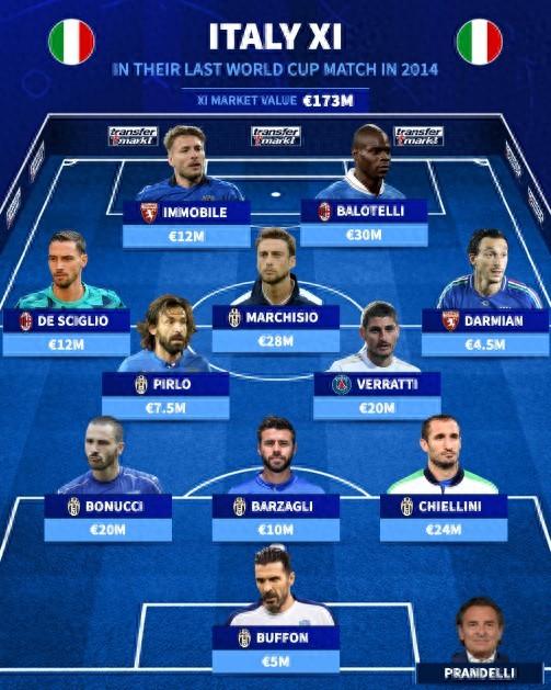 在意大利再次面臨無緣世界盃風險的情況下,德轉則列出了藍衣軍團2014年上一次參加世界盃最後一場比賽的首發陣容,當時的首發11人中有6人已經退役,2人目前爲自由身,僅有因莫比萊和達米安兩人仍在意甲征戰。