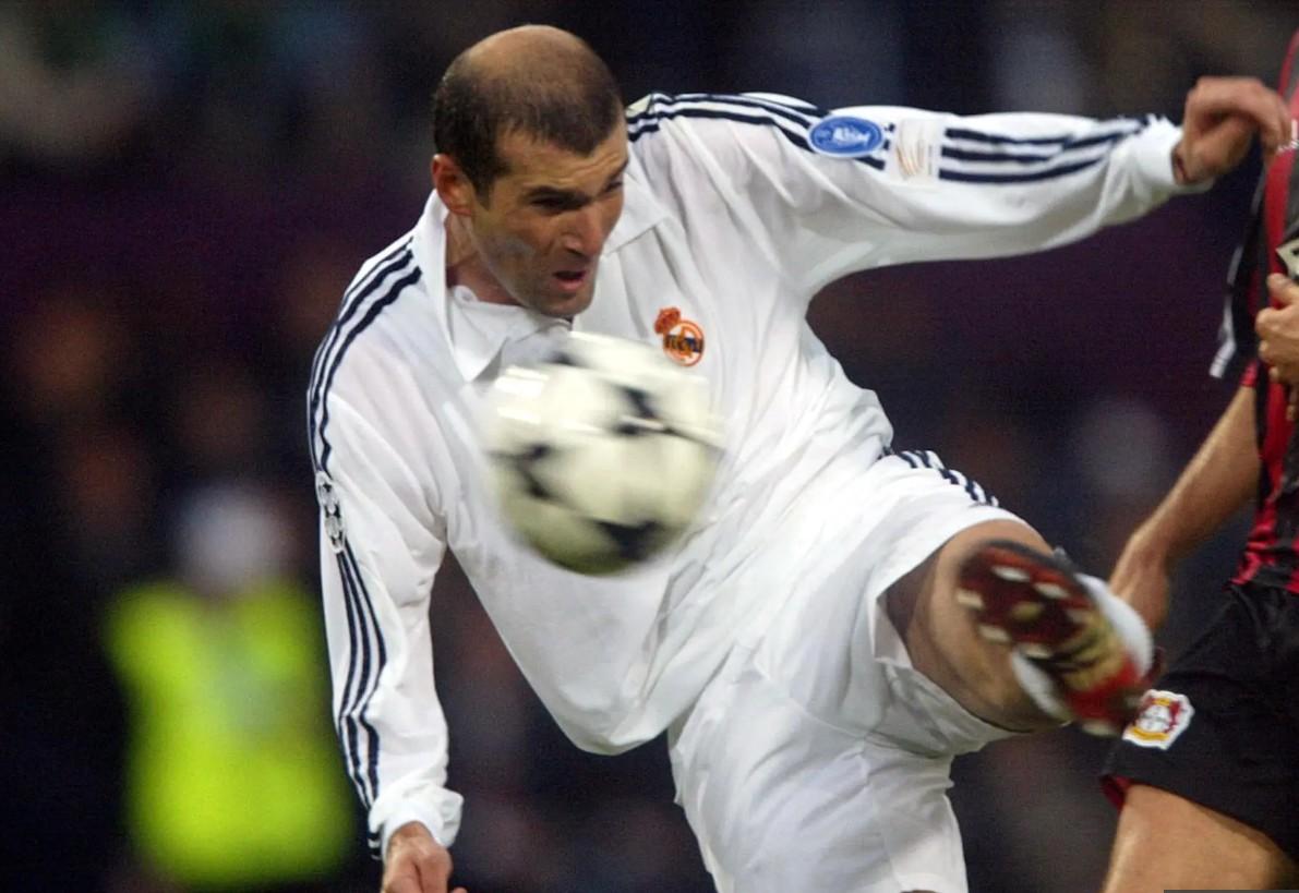 2002年歐冠決賽,齊達內代表皇家馬德里對陣勒沃庫森時打入驚豔凌空抽射。
