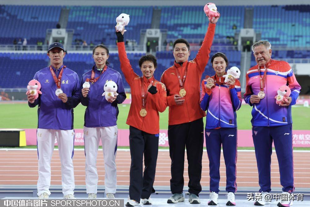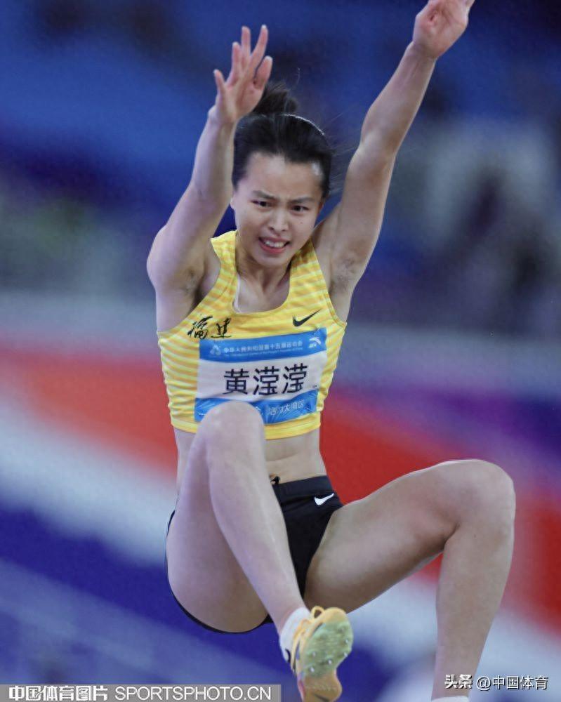 中國體育訊 11月19日晚,第十五屆全運會田徑女子跳遠決賽在廣東省奧體中心體育場進行。江蘇隊談夢怡和福建隊黃瀅瀅同以6.54米結束比賽,因黃瀅瀅第二好成績(6.32米)低於談夢怡(6.46米),最終談夢怡獲得冠軍。上海隊陳麗文以6.39米獲得銅牌。三人均創造了個人賽季最佳成績。(中國體育圖片 張昕 攝)