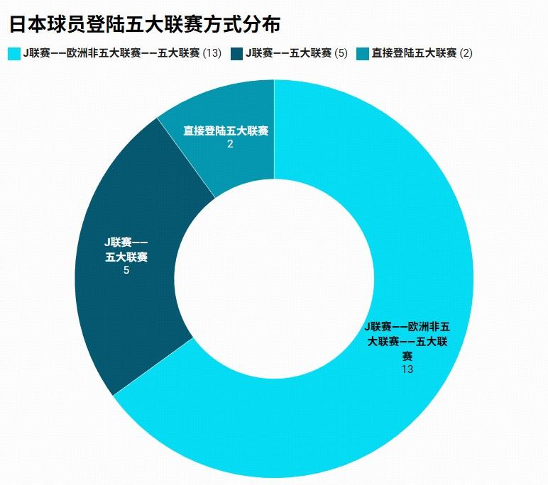 這 20 名五大聯賽日本球員,其留洋經歷可歸納爲三類:J 聯賽→非五大聯賽→五大聯賽、J 聯賽→五大聯賽、直接登陸五大聯賽。其中絕大多數球員選擇了第一條路徑,既然我們以結果爲導向,那我們便可以下一個結論:在登陸五大聯賽前,“二流聯賽”的歷練對大多數球員來說是有必要的。