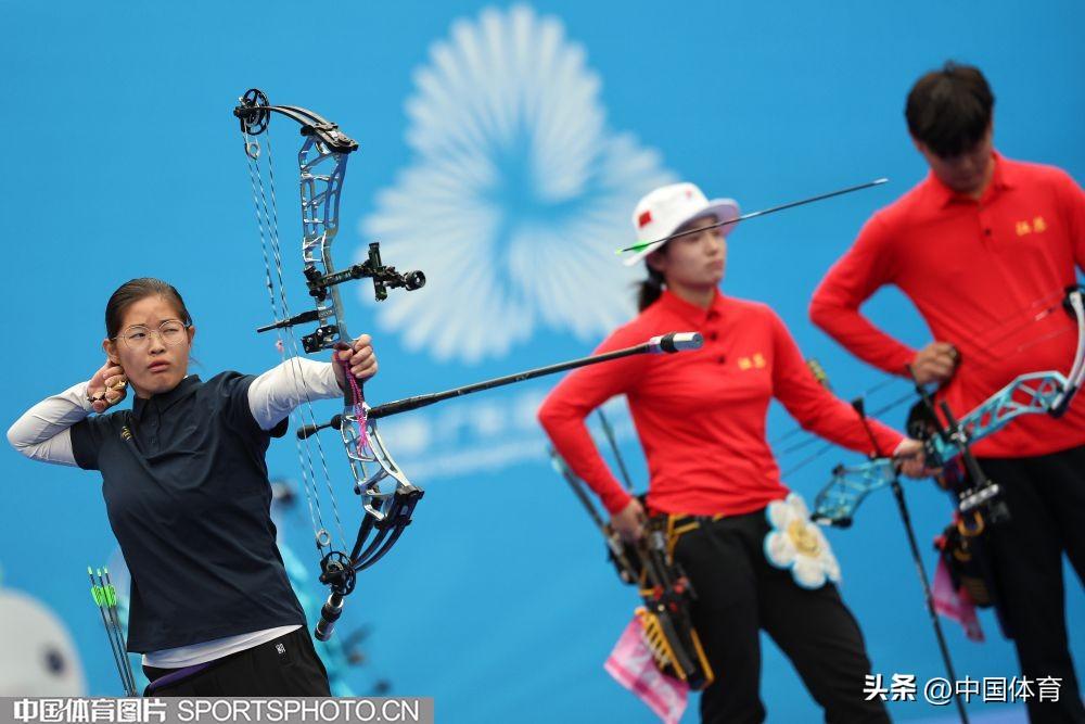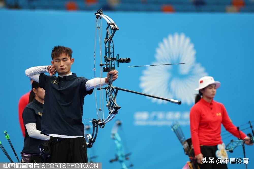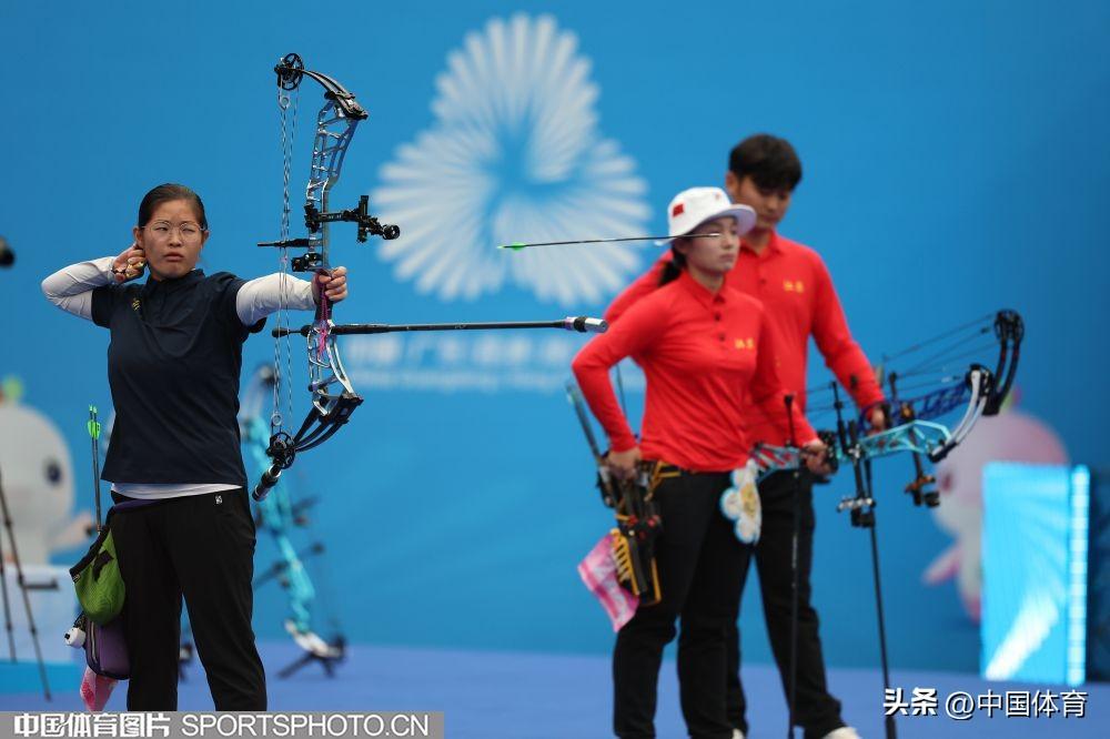 中國體育訊 11月20日,第十五屆全運會射箭比賽繼續在深圳市體育中心體育場舉行。在複合弓混合團體金牌決賽中,江蘇隊155比153擊敗浙江隊,獲得冠軍。(中國體育圖片 安靈均 攝)