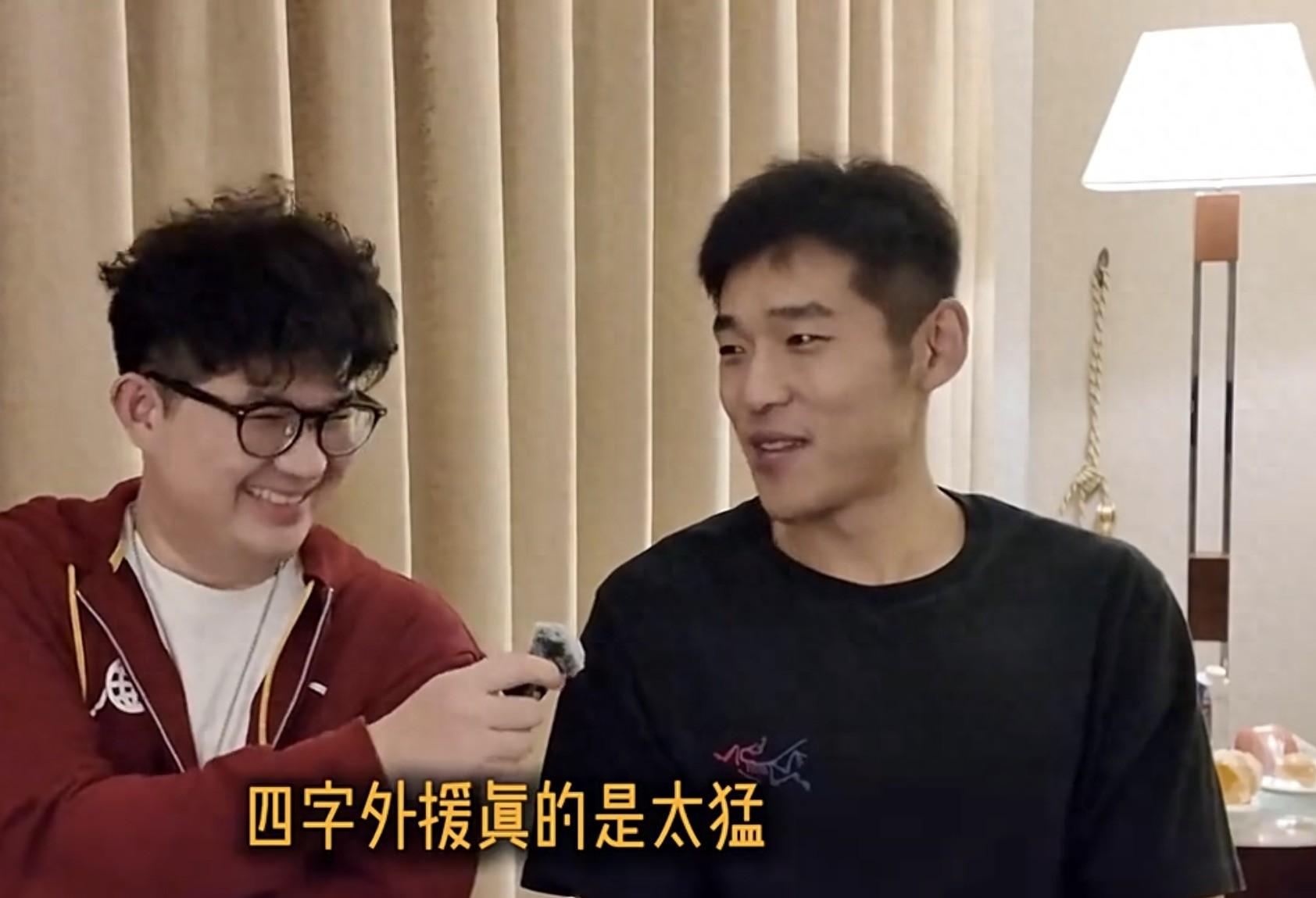 國內球員,其實國內沒有特別讓我頭疼的人。我覺得丁神,四字外援真的是太猛,我剛出道真是把我打爆了,我剛上一線隊第二年,他把我打抽了直接,防不了,完全防不了,他什麼都會,什麼都會!身體還好,還比我高。