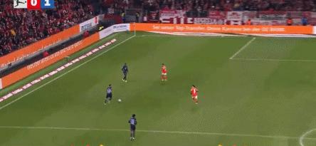 第90+3分鐘,比博破門,但是主裁判判定此前霍芬海姆球員手球在先