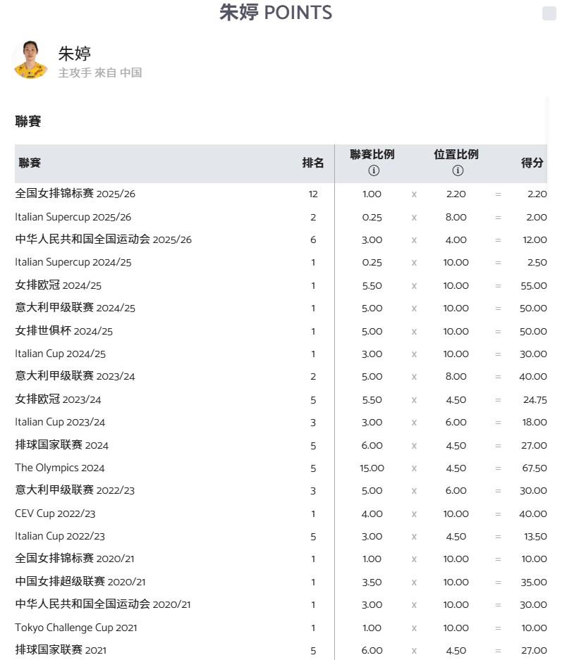 外媒公佈世界頂尖女排個人積分排名:朱婷登頂世界第一