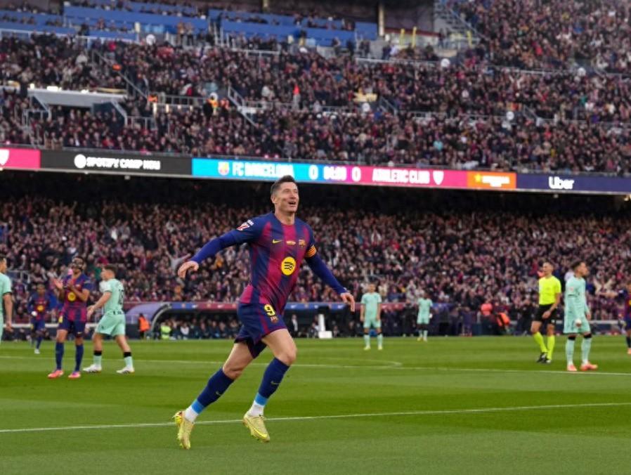 北京時間11月22日,在西甲第13輪的比賽中,萊萬多夫斯基開場4分鐘和費蘭-託雷斯上半場結束前的進球幫助巴塞羅那在前45分鐘過後主場2-0領先於畢爾巴鄂競技。