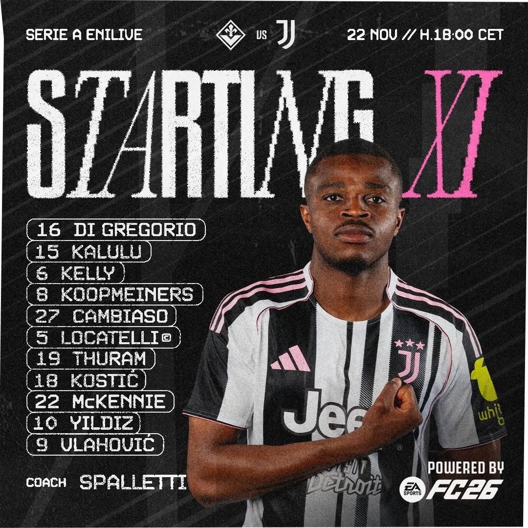 尤文首發:16-迪格雷戈里奧、15-卡盧盧、8-庫普梅納斯、6-凱利、27-坎比亞索、5-洛卡特利、19-凱夫倫-圖拉姆、18-科斯蒂奇、22-麥肯尼、10-伊爾迪茲、9-弗拉霍維奇