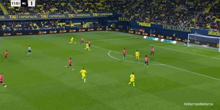 第6分鐘,佩雷斯助攻,莫雷諾捅射破門,比利亞雷亞爾1-0