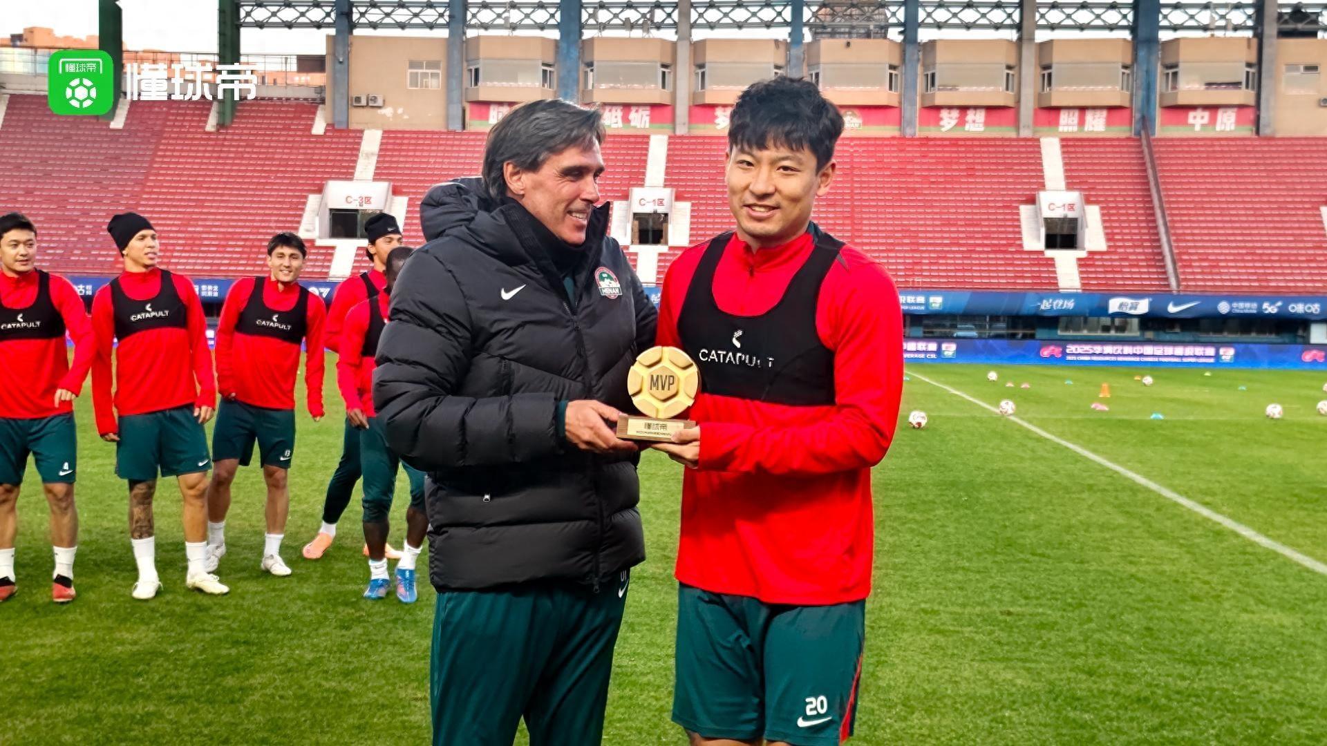 在本輪河南隊主場對陣雲南玉昆的聯賽收官戰前,何超在航海體育場收到了由球隊主帥丹尼爾-拉莫斯頒發給自己的懂球帝MVP獎盃,並接受了懂球帝記者 的專訪。