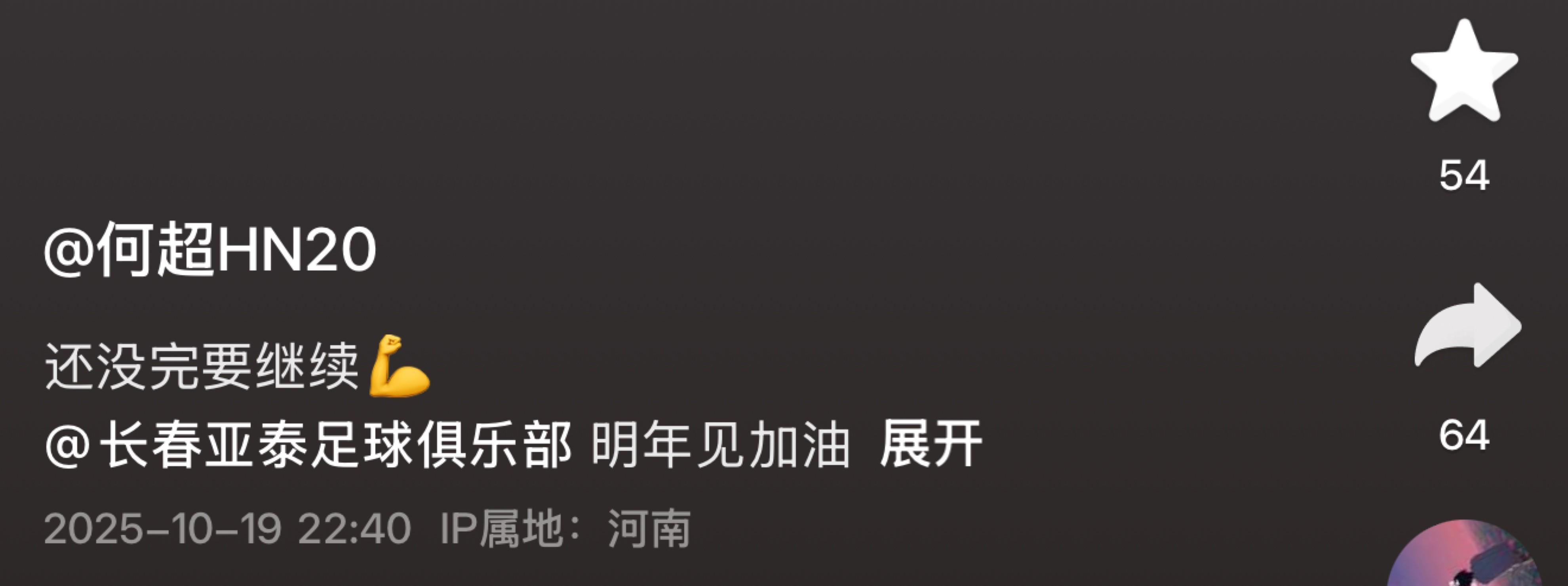 在10月份河南對陣亞泰的賽後,你在社交媒體上寫過一句話:“還沒完,要繼續,亞泰,明年再見。”但很遺憾,亞泰現在已經降入到了中甲聯賽當中。在亞泰降級之後,您有沒有跟自己的母隊的隊友們,或者和曾經的教練員們進行溝通過?