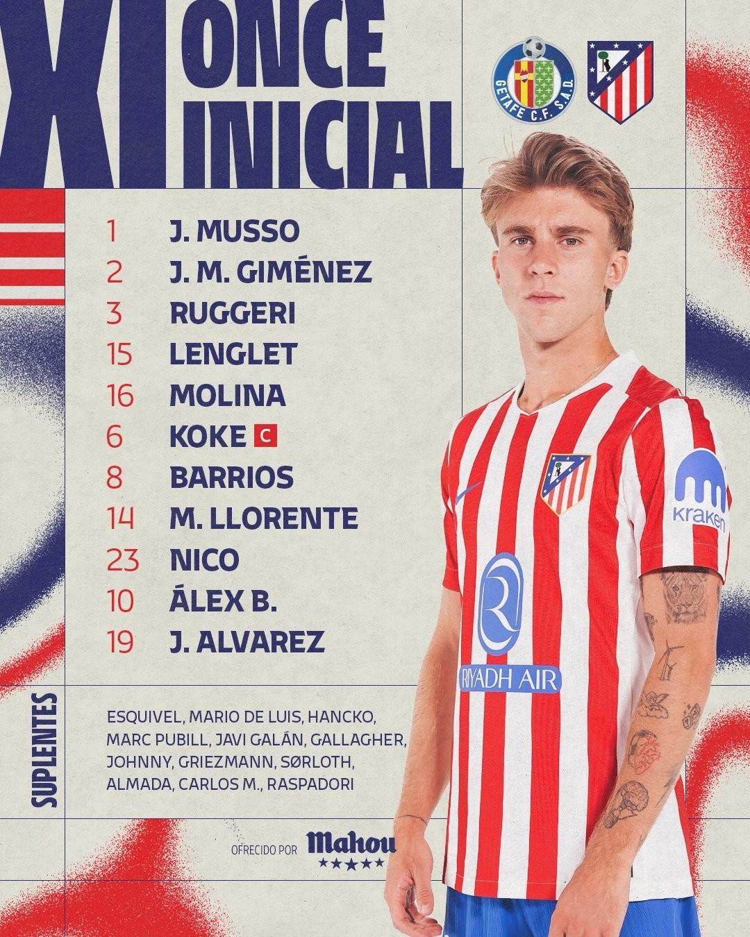 北京時間11月24日01:30,西甲 第13輪,赫塔費主場迎戰馬德里競技,賽前雙方球隊首發名單公佈如下: