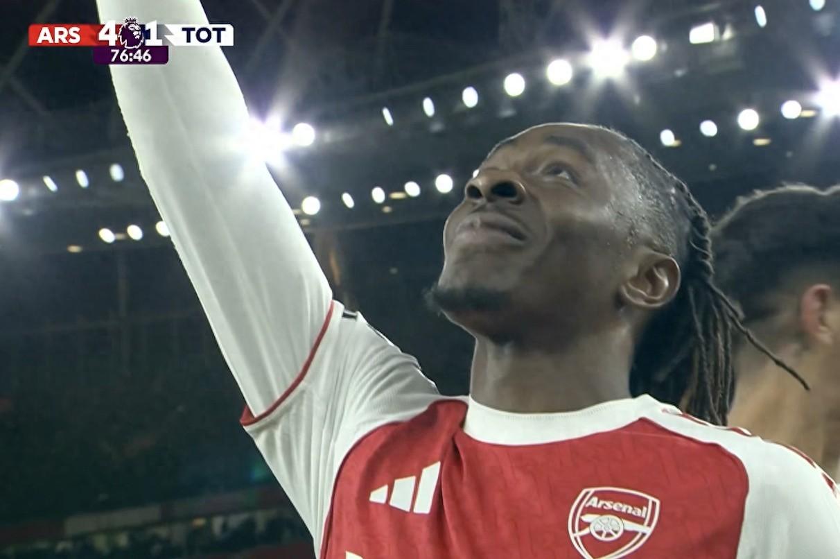英超第12輪北倫敦德比,阿森納主場對陣熱刺,埃澤上演帽子戲法,成爲近兩年來首位在英超戴帽的阿森納球員。