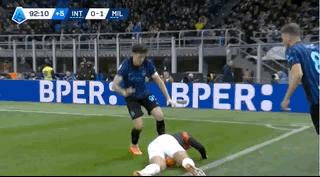 大哥你在幹嘛?米蘭德比補時階段,巴斯托尼掏襠奇克