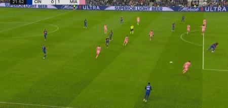 第19分鐘,西爾維蒂禁區左路傳中,梅西頭球破門先拔頭籌,邁阿密國際1-0