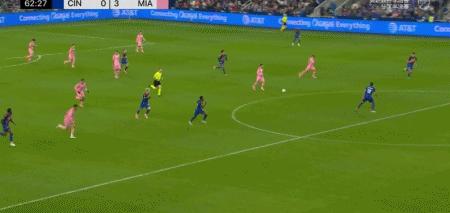 第62分鐘,梅西斜塞,阿連德單刀破門再下一城,邁阿密國際3-0