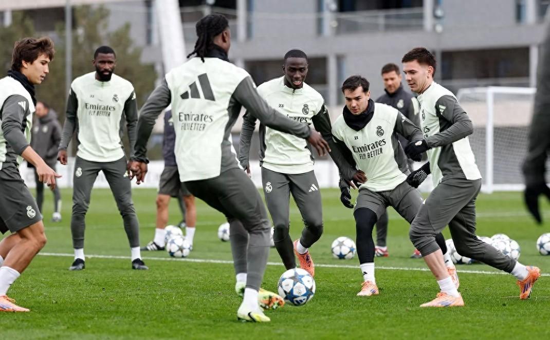 隨後在草坪上,球隊開展了多組位置戰術演練及雙區域遞進式訓練,訓練課最後以小場地對抗賽收尾。馬斯坦託諾隨隊參加了部分訓練內容,阿拉巴則在室內進行單獨訓練;卡瓦哈爾與米利唐仍在按計劃推進康復進程。