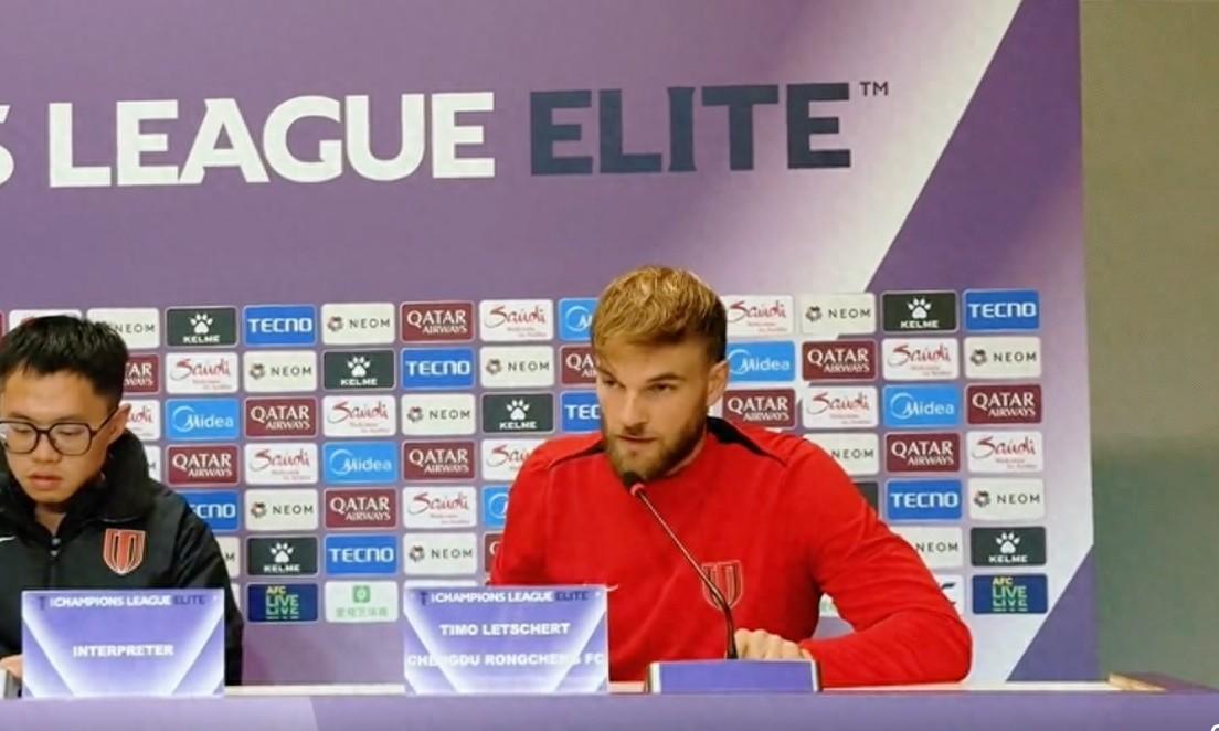 11月24日,成都蓉城對陣廣島三箭的賽前新聞發佈會,球員提莫-萊切特出席。