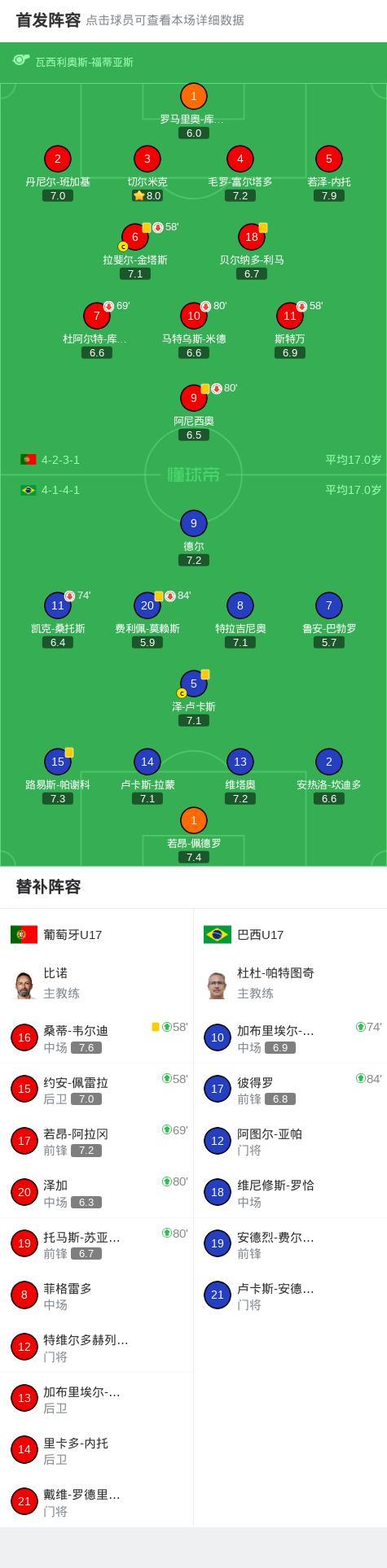 北京時間11月25日U17世界盃 半決賽,葡萄牙U17對陣巴西U17。雙方90分鐘互交白卷,點球大戰U17葡萄牙6-5戰勝巴西U17晉級決賽戰奧地利U17,坎迪多踢飛生死點球。