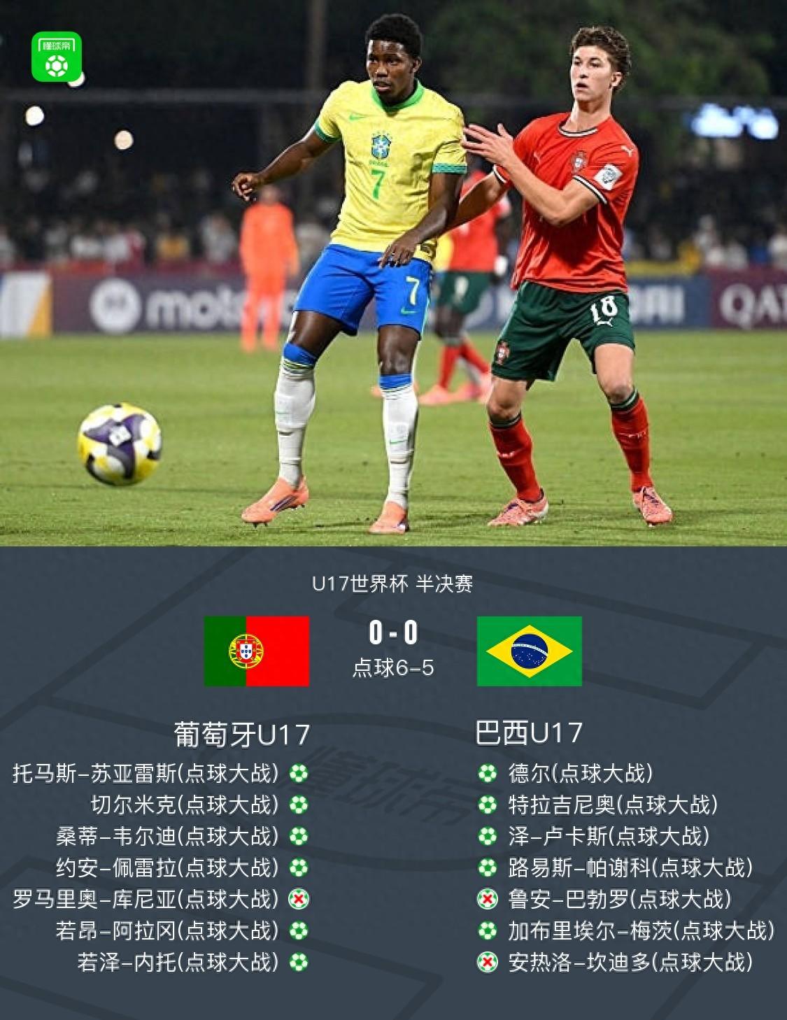 點球大戰U17葡萄牙6-5巴西U17晉級決賽