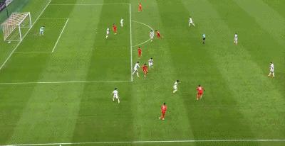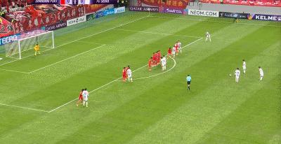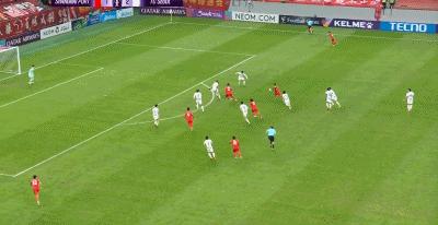 第35分鐘,魏震甩頭攻門,皮球頂偏