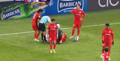第33分鐘,李新翔被對手放倒,隊醫入場治療