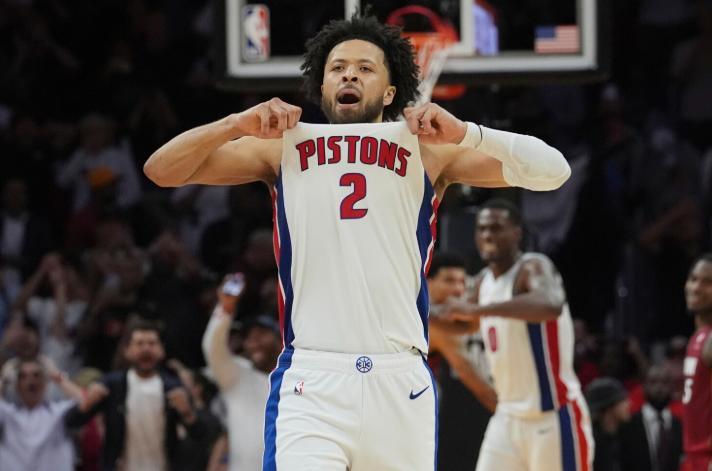 這些信條與坎寧安的品質不謀而合,這就是杜蘭特爲什麼說底特律非常適合他的原因。坎寧安身板高大卻不僵硬,他視野開闊,球風樸實,從沒有什麼浮誇的表演——擋拆之後的中距離跳投,扛着防守人突進內線後的單手打板,都是大個子後衛極爲實用的殺招。他的三分略有欠缺,但絕不會像弗拉格那樣因此憚於出手,他敢於在最後時刻去出手三分,就像上個賽季在邁阿密,面對阿德巴約完成的那記弧頂三分絕殺。